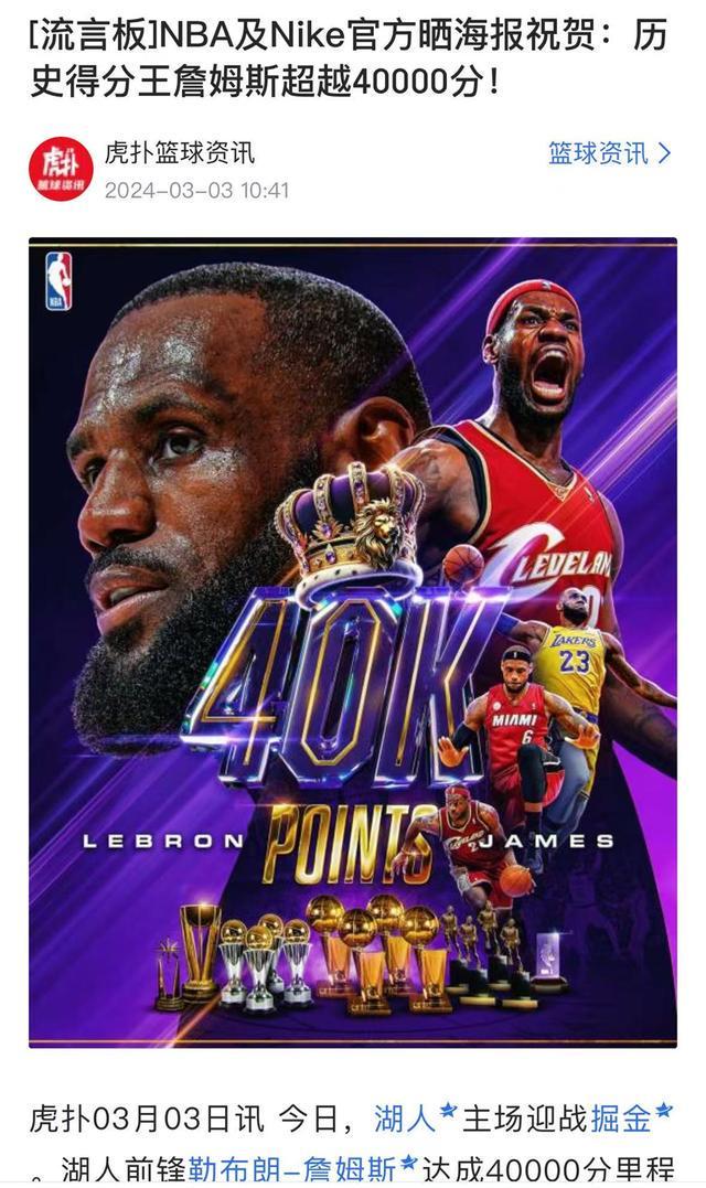 公开资料显示,勒布朗·詹姆斯是2003年的选秀状元,曾多次入选NBA最佳阵容,当选4次MVP,同时他也是第一位总得分超过40000的现役球员。刚入联盟便拥有“小皇帝”这个绰号,现效力于洛杉矶湖人队的他,将迎来职业生涯中第23个赛季。